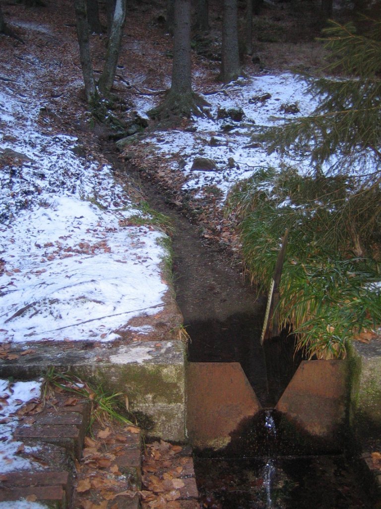 Hasselbergovým mlýnem v osadě Chaloupky (Hűttl). Byl to tmavý křemenný