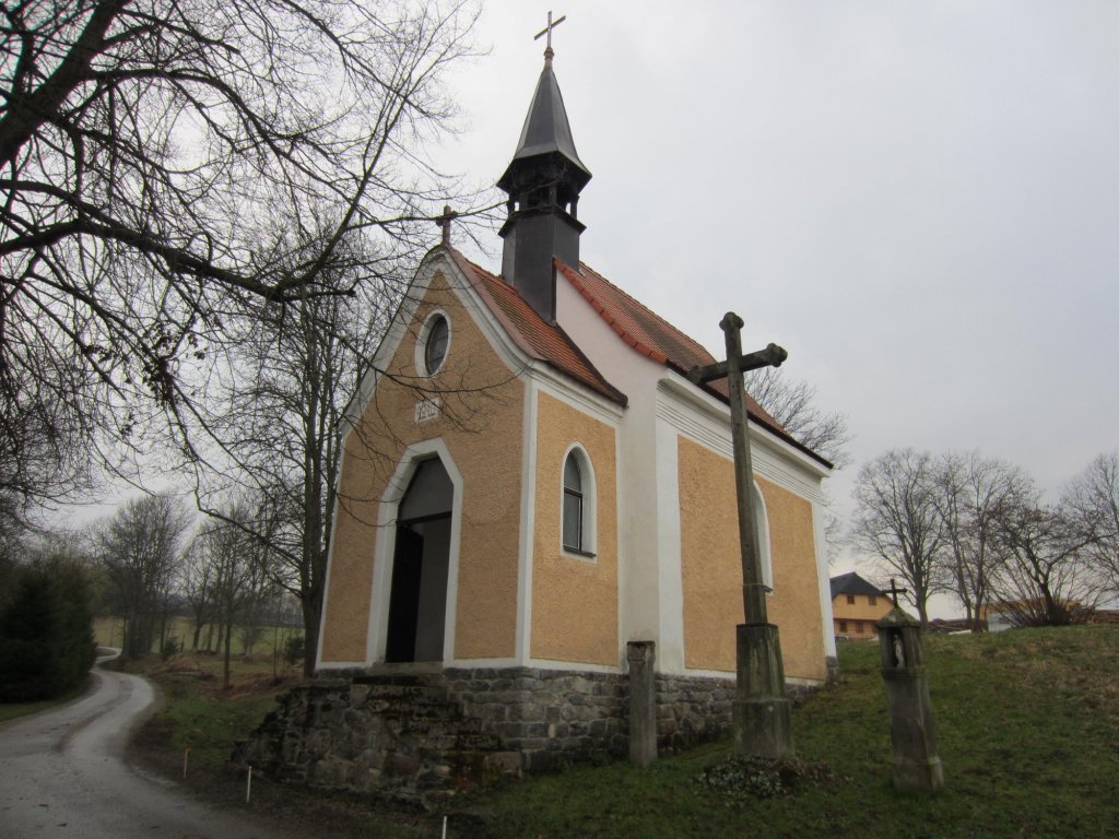 Je zde také malá kaple se zvoničkou zasvěcená sv. Anně z roku 1910. Sv. Anna byla jako světice na Šumavě velice uctívána, byla volána k přímluvě v nebi při nemocech v rodině, při dobytčím moru a při jiných pohromách rolnických stavení. Jedenkrát ročně, vždy na sv. Annu (26.7.), se zde slouží mše. Vpravo od vchodu do kaple stojí vysoký kamenný kříž z roku 1892 a Boží muka z roku 1851. Za to, že dnes kaple stojí patří dík manželům Márovým, kteří se o její "přežití" zasloužili. Důvodem pro její likvidaci prý bylo, že bránila ve výhledu řidičům. Při její opravě byl na jedné z krokví nalezen německý nápis "windfläche", což znamená větrná pláň. V květnu roku 2004 byla provedena její generální oprava.