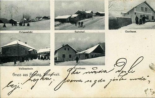 Obyvatelé mají spojení se světem po železnici, trať Vimperk - Volary. Železnici nechali vybudovat Schwarzenbergové a do provozu byla uvedena 9. července 1900. K této železnici se váže i jedna neobvyklá příhoda, která se stala strojvedoucímu panu Mauricovi poblíž Lipky. Se svým motoráčkem najel na koňský potah. Nebohý kůň doplatil na to, že se vydal domů sám poté, co se jeho pán zdržel v hospodě. Kůň se po nárazu vklínil pod vlak tak, že se motorový vůz nadzvedl a nemohl se hnout ani vpřed ani vzad. Posléze museli přivolat na pomoc řezníka z Vimperku. Vlak pokračoval v jízdě až poté, co řeznický mistr rozporcoval koně a kýtu po kýtě z pod motoráčku vynosil. Další spojení se světem je po silnici a to na Vimperk nebo na Borová Lada.